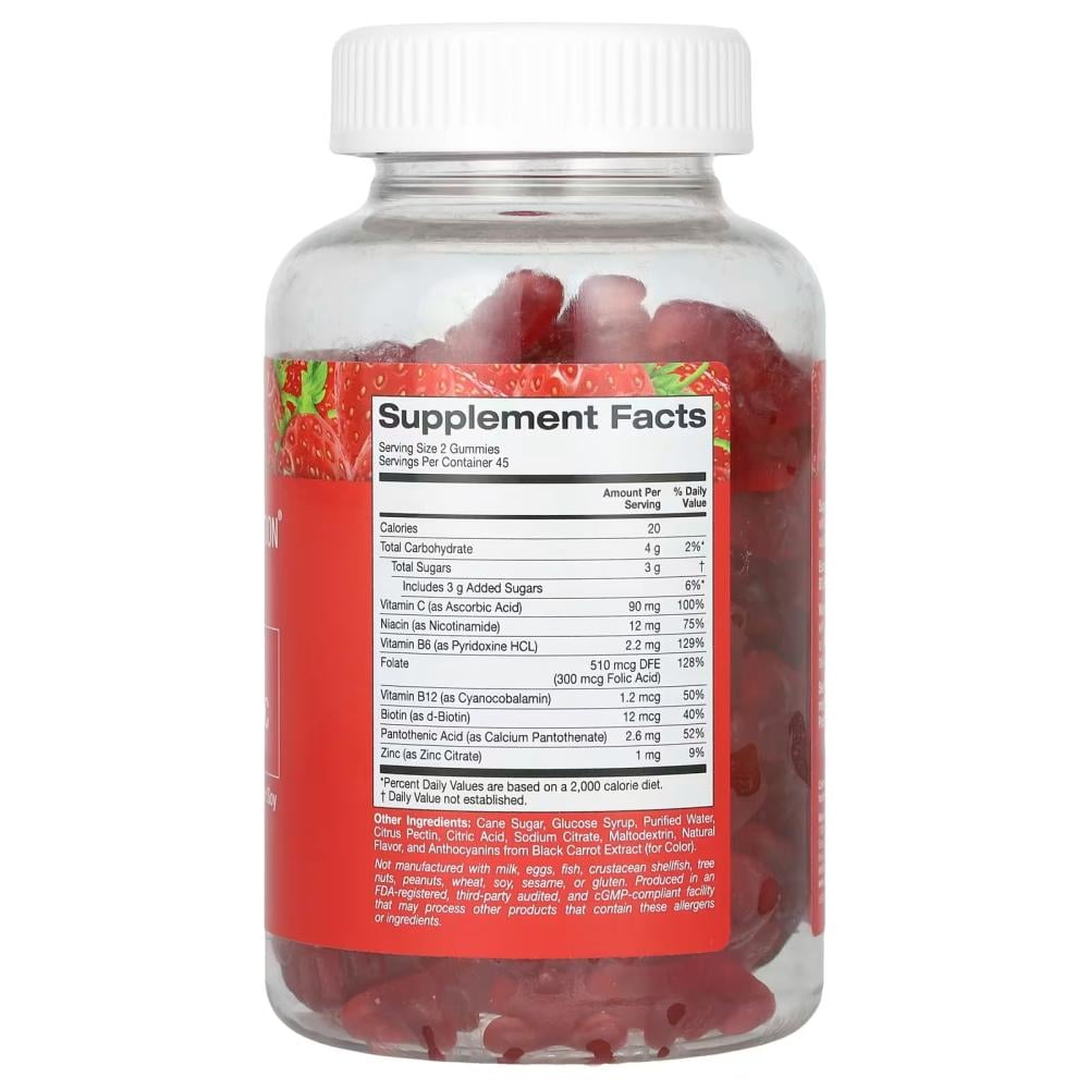 تحتوي أقراص مضغ مركب فيتامينات ب من California Gold Nutrition® على العديد من فيتامينات ب في شكل أقراص للمضغ ممتعة ولذيذة بنكهة الفراولة الطبيعية التي صُنعت من دون ألوان صناعية أو مُحَليات.